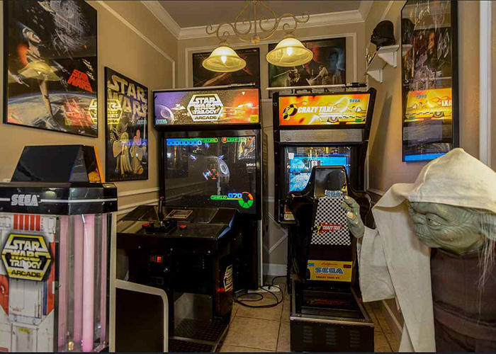 EVERY room, hallway, and corner of The Ever After Estate is elaborately detailed and movie-themed for the enjoyment of adults and children of all ages. There are 3 1/2 kitchens, 13 bedrooms and 9.5 bathrooms. The property also includes an elaborate grilling area, picnic tables, multiple gaming arcades, karaoke, free WiFi, gym, a small library, sports equipment, and more.
